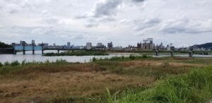 台風が来る前日に広島市内の川沿いを走ってみました。